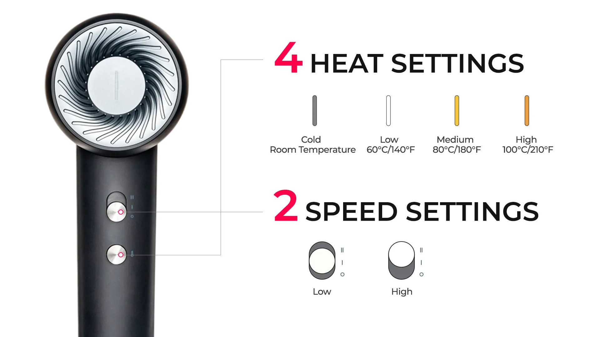 • 4 Temps & 2 Speeds