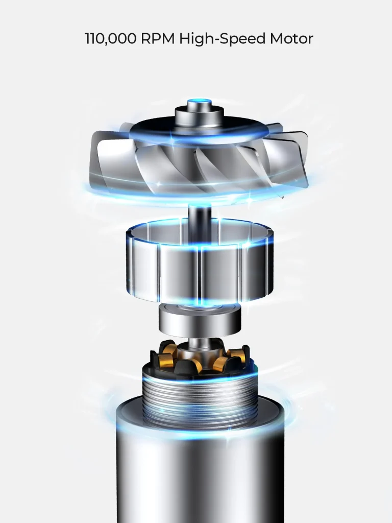 • Ultra-Fast Drying – 110,000 RPM 20L/s airflow