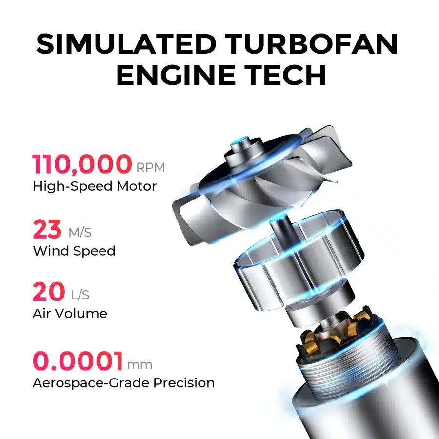 • Ultra-Fast Drying – 110,000 RPM 20L/s airflow