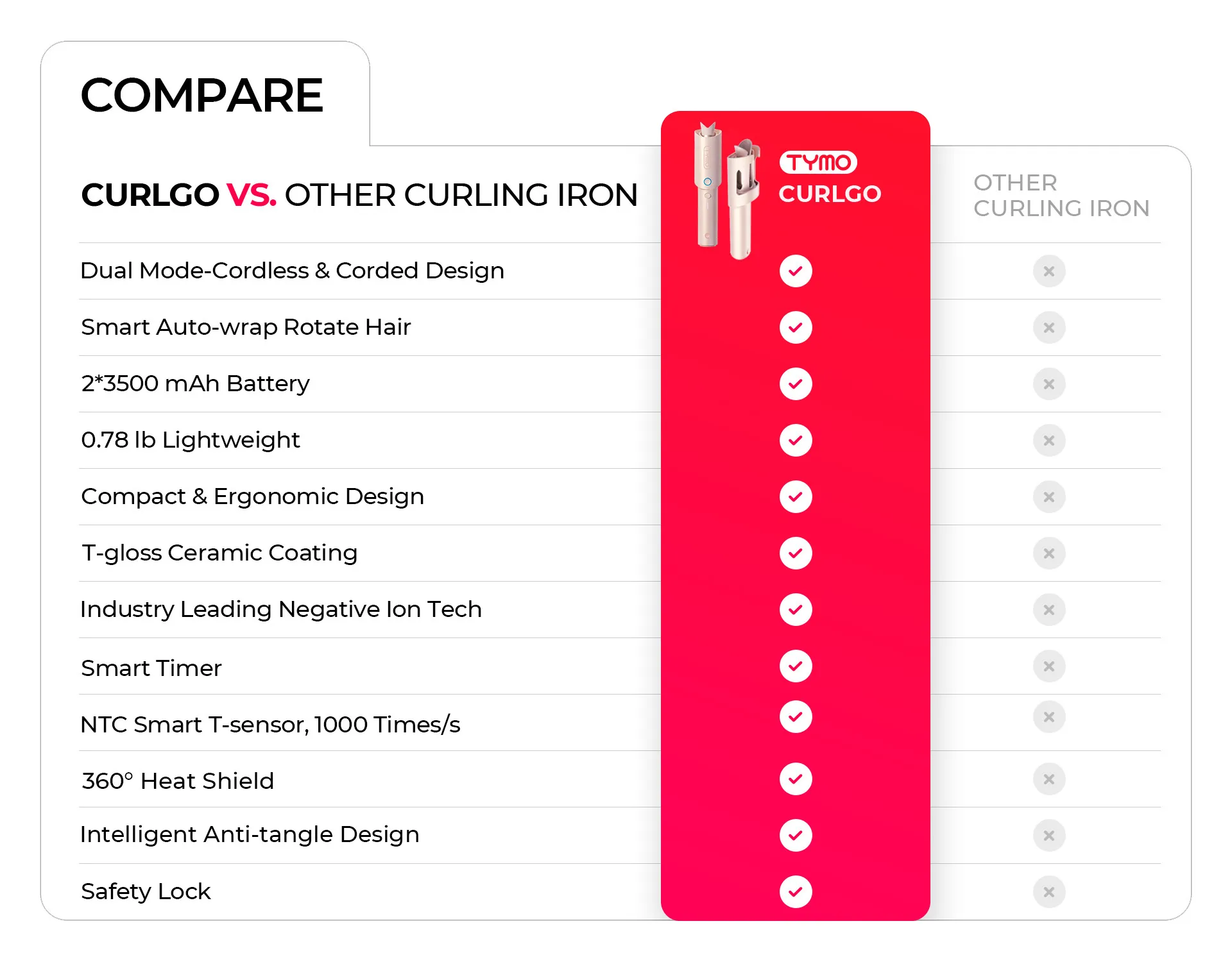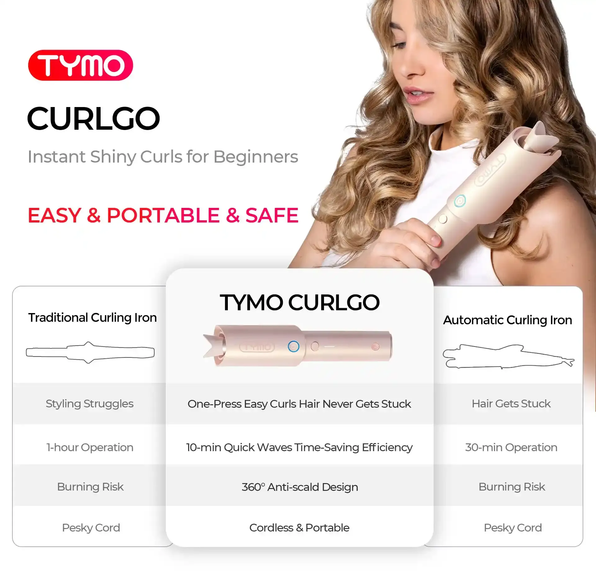 TYMO CURLGO is equipped with intelligent anti-tangling and anti-scalding designs, ensuring a hassle-free and safe styling experience.