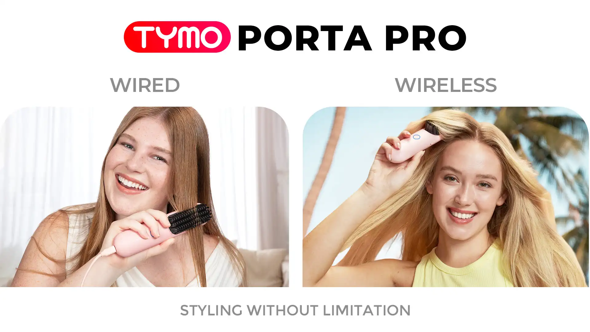 TYMO PORTA offers only cordless functionality, making it a handy mini cordless hair straightener. TYMO PORTA PRO includes both cordless and corded modes, delivering enhanced performance as the best cordless hair straightener suitable for both home use and travel. The device also incorporates advanced 200 million ionic technology for outstanding anti-frizz effects.