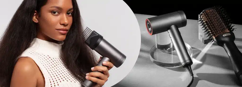 curly hair: choose a low temp and medium to high speed, with a diffusor. TYMO can help no matter your hair type, with a blow dryer for afro hair available